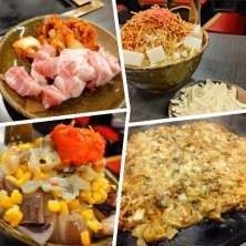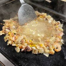 〆は"焼きそばorうどん"を選べる "五目"の焼きそば "豚・にんじん・ピーマン・しいたけ 玉ねぎ"と"麺"を ウースター系のソースで 炒めたあと お好みソースで味を整えたら ワオーな気分 大きな鉄板の上で炒めて 熱々のまま頂けるのがまた 気分も揚がります 美味しくいただきました