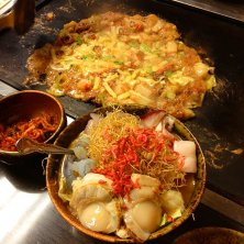 完成披露試写会に当たったので豊洲へ せっかくなのでお隣の月島でもんじゃを まぐろバターに牡蠣バター、もんじゃは明太チーズとコンビーフカレーもちチーズ、〆に焼そば&ソーセージ 久し振りのもんじゃ美味しかった♪