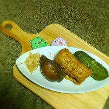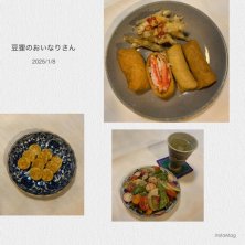 夕食は #豆狸 の #おいなりさん 。左から #明太子いなり #贅沢かにいなり #わさび #豆狸 。 ・ #ワカサギの南蛮漬け 、サラダは、サニーレタス、ブロッコリースプラウト、蕪(有機)、人参(有機)、スナップエンドウ、ミニトマト、ラディッシュ(有機)、紅芯大根。トッピングは麻の実ナッツ。 ・ 久し振りに #カズチー 。 ・ #いなり寿司 #いなり #清水焼 #instafood #ronron_food_drink_eating_coocking