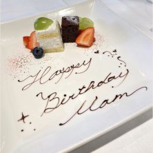 娘がバースデーランチをプレゼントしてくれました。 美味しい料理をいただいて さぁデザートタイム✨ と思ったところで出てきたプレート🥰 この写真は、もうロウソクを外していますが テーブルに運ばれてきた時には キラキラのロウソク2本。 スタッフさん達全員が私達のテーブルまで来てくれて レストランにいたお客様全員も一緒に バースデーソングを歌ってくれて 盛大に拍手もいただき もう泣くよね😭 嬉しすぎて泣かないわけないよね😭 お料理ももちろん美味しかったけど これが一番の感動でした💖