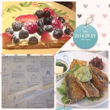 久々に義理姉とのランチ(*☻-☻*) 栗原はるみさんレシピの秋刀魚はからりと揚がっていて、アボカドのソースとよくマッチしていました♪ 場所をà la campagneに移して、嫁トークは延々と〜(^^;;
