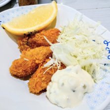 牡蠣好きをビシバシ刺激する "広島県産のカキフライ3個"は 🍋レモンを絞って 酸味のあるタルタルソースと 一緒に頂いたら最高
