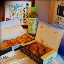先週の帰りの新幹線で食べた、くくる のたこ焼きx12 できたて ふわとろでおいしかた 満足。