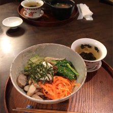 鳥取からヨガ仲間が来たので久しぶりの再会を果たしました(*^^*) yuddyの季節の野菜のナムル丼ランチ♪ ひとつひとつのお野菜と、干しえびの味噌がすごくおいしかった。 ごはんは、かために炊かれた雑穀米でした。 これは見た目以上に美味しい!
