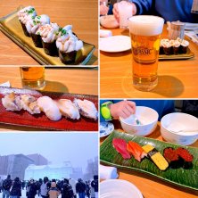 札幌雪まつり 花まるのお寿司屋さん(回らない方)でランチ。 真だち白子軍艦 活貝にぎりセット お子様寿司セット サッポロクラシック つどーむ会場から札幌会場へ。雪まつり、すごい雪! 活貝に、ホッキがあって美味しい!