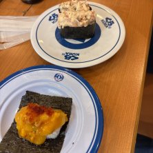 サーモンから始まり、エビ天手巻きで終わります。いつもの私の食べ方パターン(笑) 子ざる達はよくわかってくれていて、いつも あれ‼の一言で注文してくれます♫わがままな母ざるです(笑)