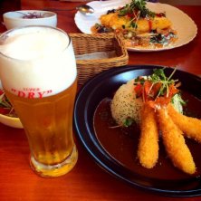 ランチ٩(๑❛ᴗ❛๑)۶ エビフライカレー ミニサラダ付き 食後に小さな抹茶アイスのサービス嬉しい〜♡♡ 今日は車がないのでブラッ〜とご近所でランチ♬ 大きなプリプリの海老が3尾も カレーもすごく美味しかった〜V(^_^)V とってもおしゃれなお店で お店の方もすごく丁寧 いいお店を見つけたょ〜⁽⁽ଘ( ˊᵕˋ )ଓ⁾⁾