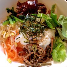 本日のランチ。新人さんの歓迎会でした。ビビンバ丼。見た目の期待を裏切らずしっかり辛くて美味しかったですヾ(@⌒ー⌒@)ノ