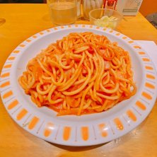 ◆アラビアータ 670円 ◆大盛り 100円 ※税込 ご存知ロメスパのパイオニア的老舗、さすがの味です! 老舗と言ってもさらに前身があり、岩崎弥太郎とも繋がりがある小岩井乳製品の卸会社が昭和33年年に大手町に出店した焼きスパゲッティ専門店「小岩井」の閉店後に別経営で継承したのがリトル小岩井。継承した年は不確かだが1973年の説もあり。 リトル小岩井にいらっしゃった方が独立して誕生したのが有楽町の「ジャポネ」。この2店を参考に開発されたのが「パンチョ」、とロメスパが広がった歴史があります。