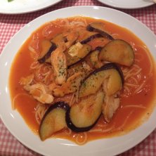 ナスとフレッシュトマトのミートソース カレー風味 サラダとドリンク付きで900円! わが家でトマトがわんさか採れるので、この味を忘れぬうちに家族にふるまってみます^_^ 細いパスタにほんのりカレー風味のミートソースが絡んで、とっても美味しかったですよ!
