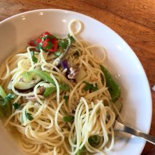 もう弊社ではないのだな、、と寂しい気もしながら 来るたびにお喋りに付き合ってくれるひとたちがいる街 ありがたや〜 金曜だけのデリプレートを食べに来てもいつも間に合わなくて、 今日もランチタイムには遅れてしまって、カレーにしようとしたら 説明してくれたオイルパスタに即決 決めるのは遅いけど、心変わりは早いものです。 ありがたや〜