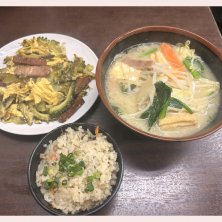 鶴見の沖縄料理屋さん。いつも沖縄そばを食べていたけど、今日はジューシーと味噌汁、ゴーヤチャンプルをオーダー。 沖縄の味噌汁は具沢山と聞いていて、一度食べてみたかったんだけど大きすぎ! スパムや豆腐、卵、野菜がたっぷり入ってました😋