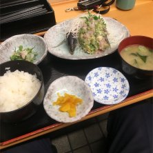 横浜でブランチ 横浜中央卸売市場の食道街「もみじや」の刺身定食。前回は売り切れだったので、今日はウニをしっかり頂けました。少し値上がりしてしまったのが残念。刺身はビンチョウマグロ、ブリ、アジ、子持ちイカ。今日は比較的空いていました。