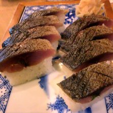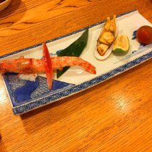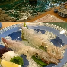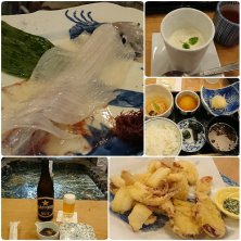 一昨日の福岡出張。呼子の烏賊で有名な博多中洲の「河太郎」 でも、この日は時化のため烏賊は入荷なしで残念。代わりに、オコゼの刺身とその残りは唐揚げに。ごま鯖、烏賊焼売、鯛尾頭煮も美味しかった(^。^)