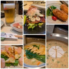 クラフトビールのイベントで飲みまくり、気づけば夕方になってました… 帰宅してたら仕事終わりの娘から一緒に飲もうと連絡が… ということで娘の旦那さんも呼んで夜の部です 場所中なのでビール半額(1人2杯まで) ちゃんこはキムチ味にしました 先日からポテトに取り憑かれてる娘 山芋鉄板焼、ヤゲン軟骨、エビマヨ、ゴボウ唐揚げなど好きなものを頼んでるな 〆は雑炊にカマンベールチーズトッピング 昼飲みで結構酔ってて途中ウトウトしてましたが謎に復活してこのあともう一軒💦