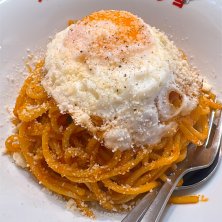 白ナポ パンチョの裏メニューです。カルボナーラ風で、にんにくが効いていて、美味いです。