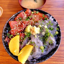 城ヶ島のカネあさんで中トロ釜揚げしらす丼。まあ観光地価格だけど美味しいよ。