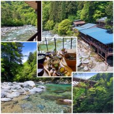 すぐ下に透明な川がある素敵な料理屋さん。 岩魚と山菜料理、美味しかったです^_^