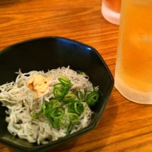 「ミナミで五本の指に入る美味しい生ビールや!」 と隣に座ったおじさんが言ってます(^^;; 先ずは釜あげしらすから∀(-・゚)☆