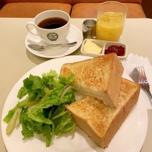 銀座でモーニング 実はトリコロール本店で食べたくて9時半頃行ったら店内でウェイティングしている方がたくさん💦 目を疑いました👀 トリコロール、いつのまにそんな人気になったの〜😱 回転扉で入って、そのまま半回転して出ました 気を取り直して同じようなメニューをいただけるこちらへ移動 トーストの種類もいろいろあるし、オレンジジュース付きだし、コーヒーのお代わりもできるしこっちでよかったかな 厚切りトースト、ふわふわで美味しかった❤︎