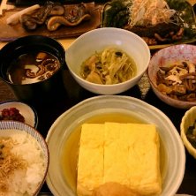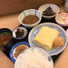 おでかけついでにお祝いも兼ねて、日本橋はんなりやのお昼セット。 おばんざい3種にふわふわのだし巻き卵がついてます。網焼肉、焼き魚付きにしたのですが、無くても十分お腹いっぱい。 ご飯に乗ってるちりめん山椒も美味しかったです。