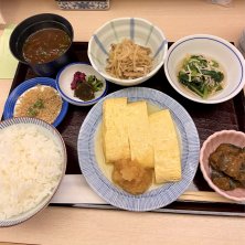 ちりめんじゃこ付きセット 久しぶりに伺ったらPayPayで支払いできるようになってました お出汁がたっぷり染みただし巻きは安心安定の美味しさ、今回のおばんさいは白菜と厚揚げベーコンの煮物、ひじき煮、油揚げともやしのマヨごま和えでした✨