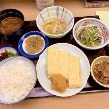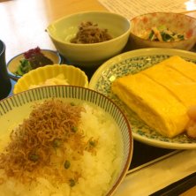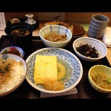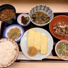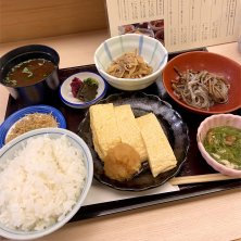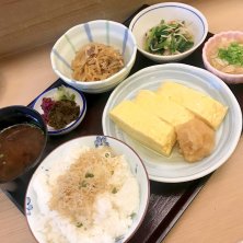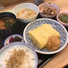 お昼のセット、ちりめんじゃこ付き🍚 人出が戻りつつある日本橋で久しぶりにこちらのおばん菜セットを頂きます✋ お出汁がたっぷり染みた玉子焼きとほっこり美味しいおばん菜の数々、最高です😆✨