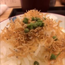ちりめんじゃこ付きセット😄 久しぶりに伺いましたが、やはり安心安定信頼の美味しさです👌 今日のおばんさいはこんにゃくのツナ味噌和え、えのきと青菜のお浸し、ベーコンと白菜の煮物でした✋