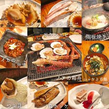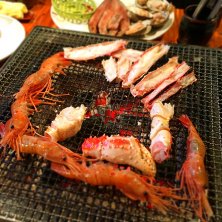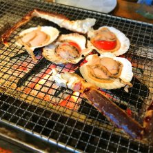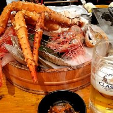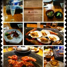 部下さん達とノンアル会食(╹◡╹) 北の海鮮炙り ノアの箱舟😋 イバラガニ…ホタテ…ボタンエビ…真ホッケ…ほっき貝…道産牛…陶板焼き…牛トロフレークご飯…マンゴーシャーベットなど😋
