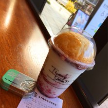 アメリカンチェリーパイフラペチーノ&アフターコーヒーミントをいただいています♬ アメリカンチェリーパイフラペチーノはドーム型のパイを崩す楽しみがありますね(#^.^#) チェリーが口の中に広がると幸せを感じます♡ チェリーとフラペチーノの相性いいなぁ(๑˃̵ᴗ˂̵) コーヒーミントはミントが少し強めで好き嫌いが出て来そうな感じがします(^^;; 週の後半木曜日のスタートです 仕事頑張ろうっと!