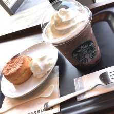 Tアーモンドトフィートリプルチョコレートフラペチーノ、バターミルクビスケットホイップ付きをいただいてます。 コーヒーを使ってないのでコーヒーが苦手な人も大丈夫です。 エスプレッソを追加してビターな感じを出すのも有りですね🎵 日本限定のトフィーシロップを使って、3種のチョコレートとマリアージュした甘〜いビバレッジに仕上がってます。 この甘さがバターミルクビスケットをさらに美味しく感じさせてくれていますよ🎶 アーモンドトフィーシロップは定番化されるんですって(#^.^#)