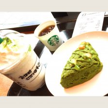 今日から新発売のチョコレートケーキトップフラペチーノwith抹茶ショット、アメリカンスコーン抹茶ヒーティング、アフリカキタム試飲をいただいてます(^^) 全身抹茶色になりカメレオンみたいです(笑) スタバが本気で抹茶を扱うとこんなに美味しくなるんだと感動です٩( ᐛ )و フラペチーノの中にチョコレートケーキが入っているのでストローが刺さらないんですよ〜(汗) アフリカキタムは東アフリカのウガンダ産の豆に変えたんですって♬