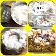 スターバックス・クグロフをアップします。 ロゴが入ったアルミ缶にビニール袋に入れられたクグロフが出てきました。 裏を見ると「KIZ」の文字がありました。 形は丸く、中央が凹んでいます。カヌレを大きくした感じです。 クグロフには真っ白な粉糖がまぶしてあります。舐めてみると甘くありません。 ナイフでカットした断面には干しぶどうとナッツが見えます。シュトーレンのように密に詰まっていません。 食べた感じは美味しいぶどうパンでした。 ごちそうさまでした🎵