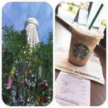 Tエスプレッソアフォガードフラペチーノをいただいています🎵 ソラマチも七夕の準備ですね🎋 願い事を書いて七夕様にお願い事しましょうか😊 まずはみなさんの健康と発展をお祈りしま〜す🙏