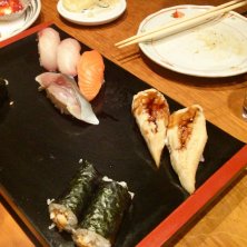 おはようございます! 爽やかな朝、キレイな青空~\(^o^)/ 昨日は、疲れがひどくて 夜ご飯作るのパスさせてもらった~ 私がおごるからと、 旦那様誘って 最寄り駅近くのお寿司居酒屋さんで。 お刺身おまかせ盛り、 じゃこサラダ、 小あじの南蛮漬け。 他に握りを4貫ずつ。 美味しかった~( 〃▽〃) そして帰宅しそのまま寝ちゃった。 ゆっくりしたお陰ですっかり今朝は元気に。 仕事は忙しいけど、あと二日頑張ろー!