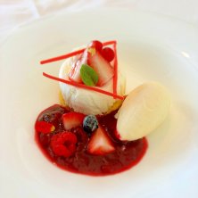 渋谷でランチ 夏のメリメロサラダ 冷製ガスパッチョ ラタトゥユを詰めたイサキのオーブン焼き ルッコラとアンショワイヤードと共に 鶏もも肉のディアブル クリーミーなポレンタ エストラゴン風味のソースロベール