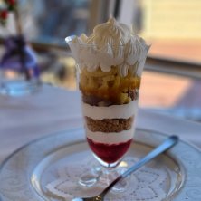 銀座スカイラウンジリニューアルオープン記念ディナー続き ◎メイン 北海道産仔牛のソテー カラフルパプリカソース ストロガノフ ◎ひとくちカレーライス ここに東京會舘伝統のカレーが一口 ◎パフェマロンシャンテリー 何と言っても目玉はデザート 銀座スカイラウンジ限定で投入されたマロンシャンテリーのパフェ 有りそうで無かった品ですよね! いや、これはわざわざ食べに来る価値のある一品 ランチやティータイムでも頼めるので、是非お試しいただきたいですね! 単品だと1980円 ディナー8800円