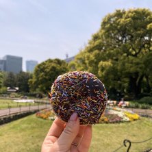 日比谷公園でおやつタイム🩷❤️🧡💛🍀🌷🌼 背景の花壇もドーナツも🍩かわいい😍🩷