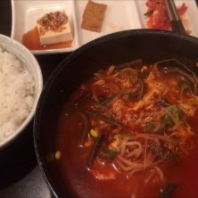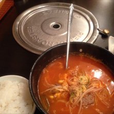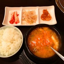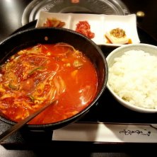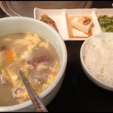 安いランチを探す旅始めました☆ 本日はユッケジャン定食。 大きめの丼で供されるたっぷりのユッケジャンにおかず3品、さらに食後にテイクアウトのコーヒーまで付いてワンコイン☆ 通っちゃうぞ~(^0^)