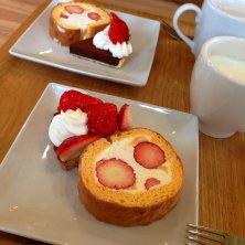 いちご狩りも出来る南知多のいちごの丘 いちごロールといちごタルトのケーキセットといちごパフェと迷って贅沢に両方食べちゃいましたぁ 至福のひととき(^o^)v