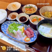 こんにちは〜☁️ 今日のお昼はお袋👵を連れて日本海の見渡せながらいただける鮫島食堂でランチ😊💕 私は浜のかあちゃん三見シーマザーズの皆さんが作る人気ナンバーワンの日本海定食をいただきました🤗 この後、実家🏡で少し休んでゆっくり安全運転で自宅🏠に帰りたいと思います🚗💨