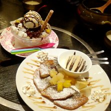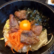 娘と原宿デートの後 新大久保に来てランチです(^-^) まずはおかず6品盛り。 あ、 母のお手元には 当然マッコリがあります!(笑)