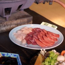 そして猪鍋コース。 前菜のこんにゃくや酢の物、渋皮煮、デザートのシャーベットにいたるまで自家製手作りとのことで、優しい味で美味しかった。 高騰中の白菜もたっぷり! きのこの里というだけあってきのこ類が特においしい。 鍋が残ったらお持ち帰りまでさせてくれる。 とってもいいお店でした。