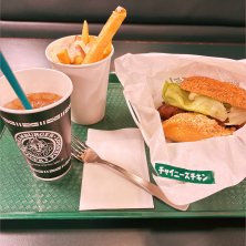 チャイニーズチキンカレー&ラキポテ カレー甘めで美味しかった! チャイニーズチキンは大きめで食べ応えあり。 ラキポテのソースも美味しい 今度また来る機会があればシェイク飲んでみたい