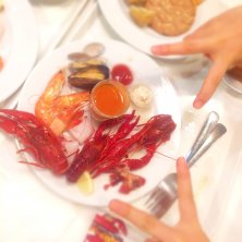朝からIKEAへgo♪ ファブリックを物色する前に…腹拵え(^。^) 育ち盛りの息子が加わると 凄いボリュームに成りましたσ^_^;