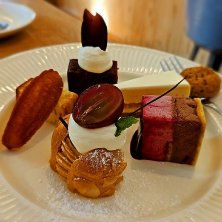 ケーキ盛り合わせ¥600 アメリカーノ¥450 二人で行くと自分の盛り合わせと異なるケーキで盛り合わせてくれます。少しずつですが、10種類も食べられて非常に満足(´▽`) 今日はクリスマスマスケーキを予約するお客さんで混んでました。