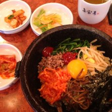珍しく昼に銀行、ついでに妻家房、ここ本店です。店にいるひと9割が石焼ビビンバ食べてた。ここのは安心する〜^^ 小鉢の中にほぼ原形ニンニクとチクワみたいなののナムル…食べちゃった( ̄▽ ̄)