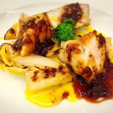 関西出張前の時間にKIHACHIでランチ会♡ 昼間っから、あの彼のことや 例の彼のこと…んもぅ、 女子トーク炸裂でございますぅ(苦笑) 写真はプリフィクスコースの中で 私がセレクトしましたメインのお料理です。 メカジキのグリルを 甘辛いソースで頂きました( ´͈ ᗨ `͈ )◞♡⃛