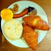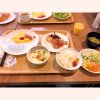 オムライスのセット。例によってオムライス内部のチキンライスには紅生姜が当然のように入っている。