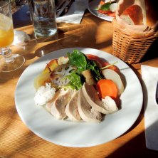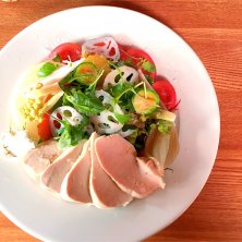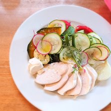 初めてこれたパッパライライ。ずっと来たくてやっと来れた! 主人はお野菜ランチは物足りないと思うので今回はひとりで。 お野菜がとっても甘い!オリーブオイルと岩塩だけで味付けしてある。 前日に食べ過ぎてたのでちょうどよかった。 甘い野菜に囲まれた中で、数枚の蒸し鶏にクリームチーズを付けて食べる幸せ。 この美味しさを話しあえる相手がいなくて 少し寂しかったけど。 心の中で何度も感動した! またこよう。
